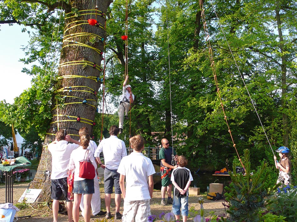 Während der folgenden "Landpartie"-Veranstaltung durften wir dann unsere 'Seilklettertechnik' vorführen.
