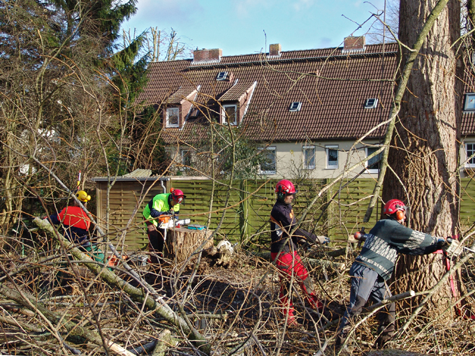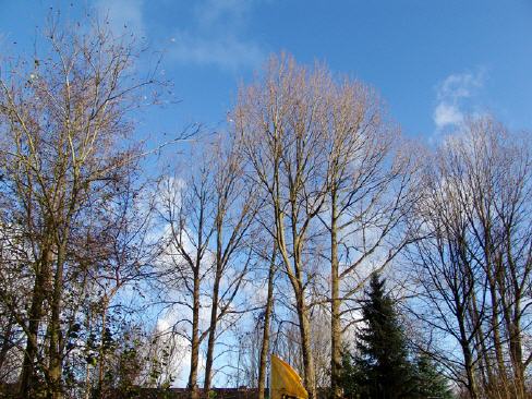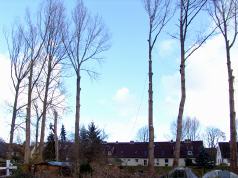 Etwa 80 Jahre alte Pappeln, einmal als Windschutz gepflanzt, werden zur Gefahr: Bei Sturm fallen große Äste herunter, und es ist nur eine Frage der Zeit, wann einmal einer der über 30 m hohen Bäume bricht ...