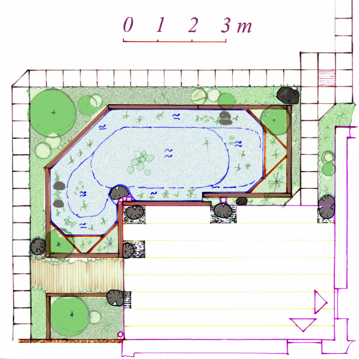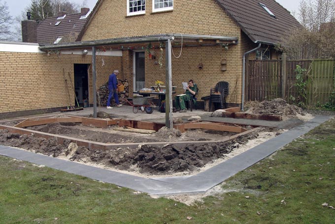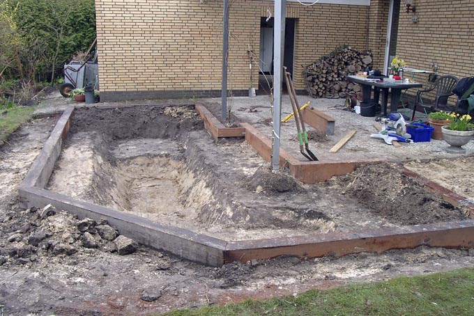 An der überdachten Terrasse soll ein Wasserbecken entstehen,