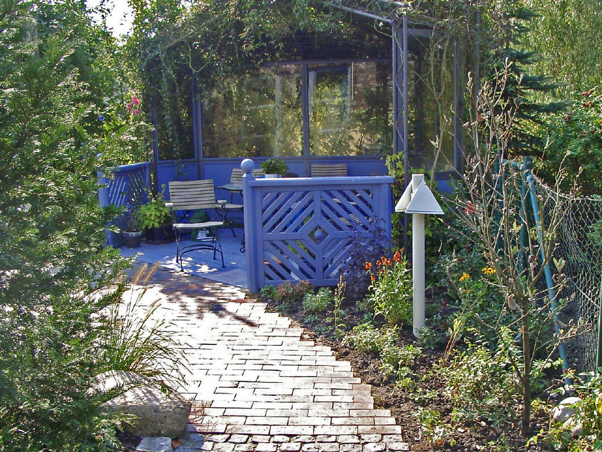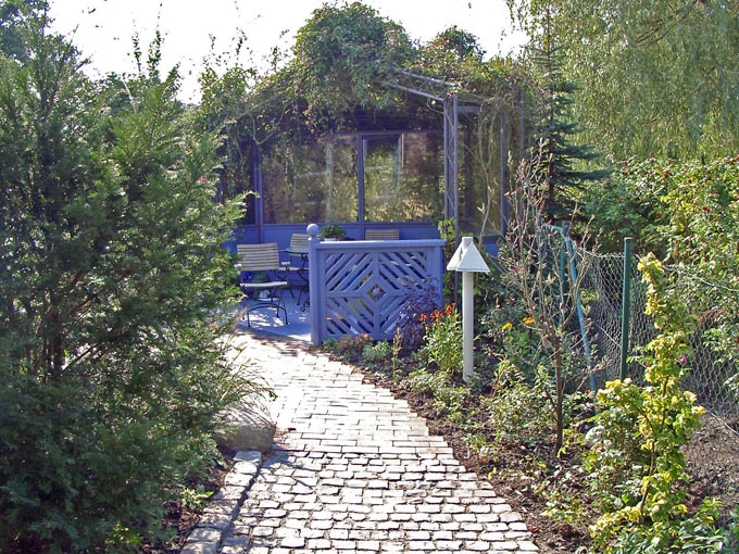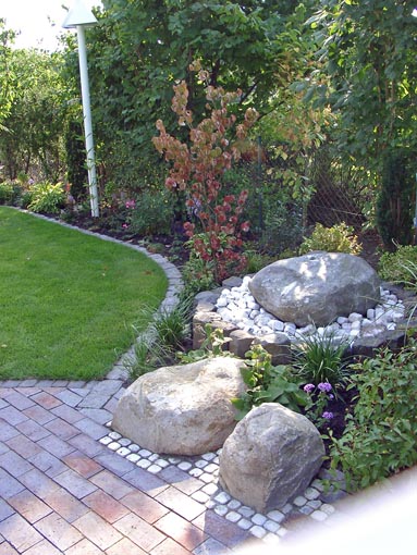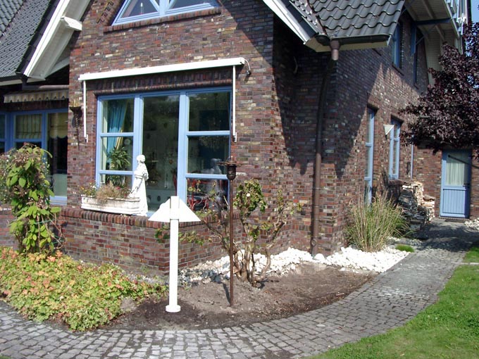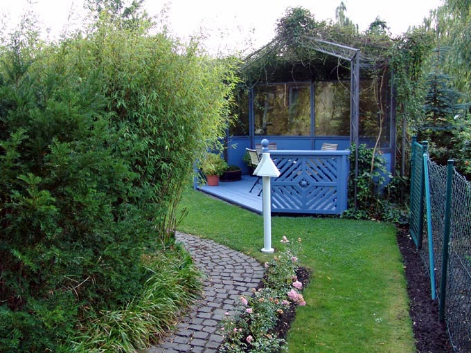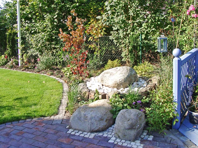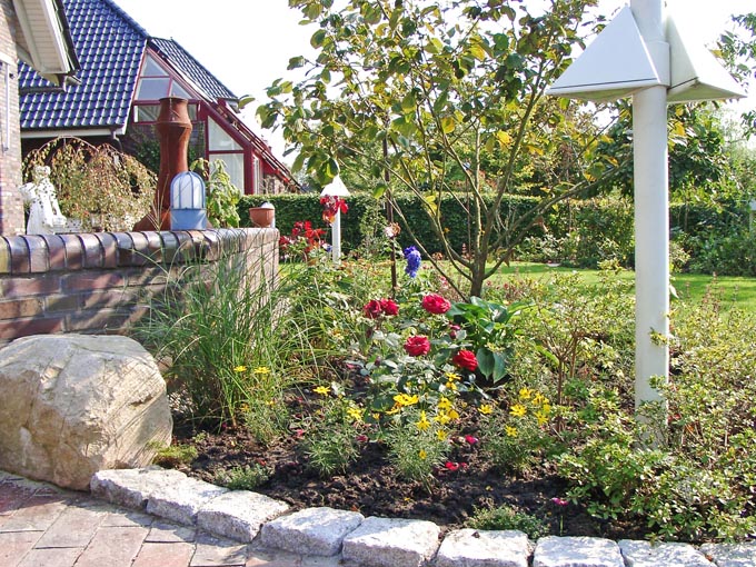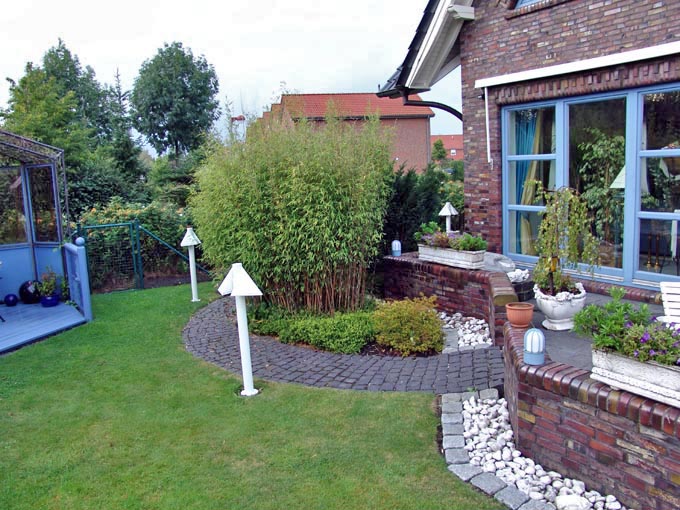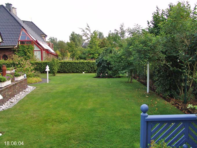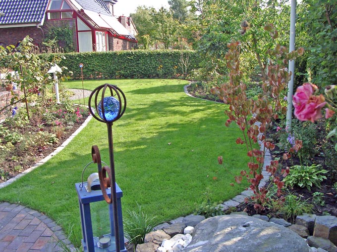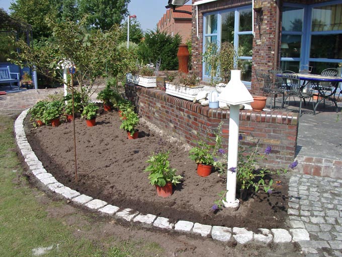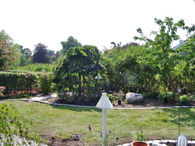 Der Garten wirkte überwiegend ein wenig "technisch".Nun rücken die Pflanzen und Blumen in den Vordergrund.