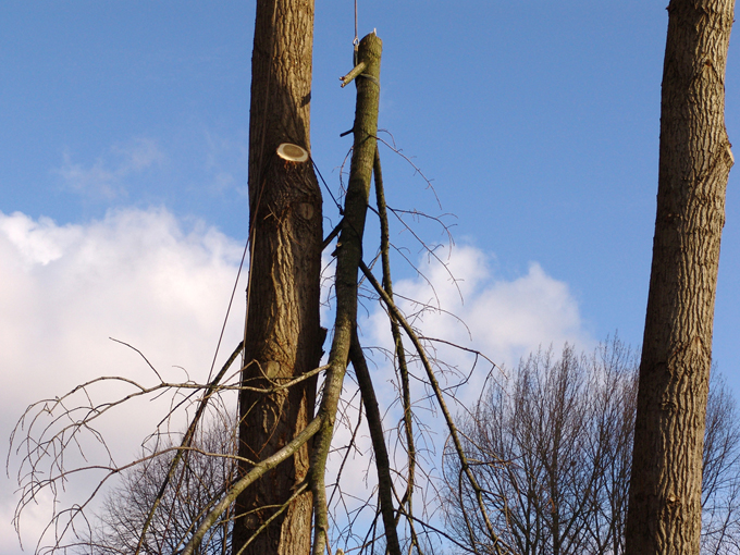 Auch schwierigste Fällungen auf engstem Raum können wir mit der Doppelseiltechnik durchführen.