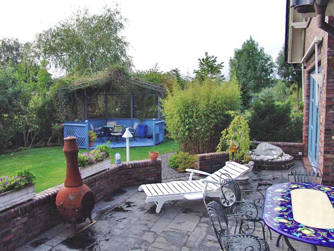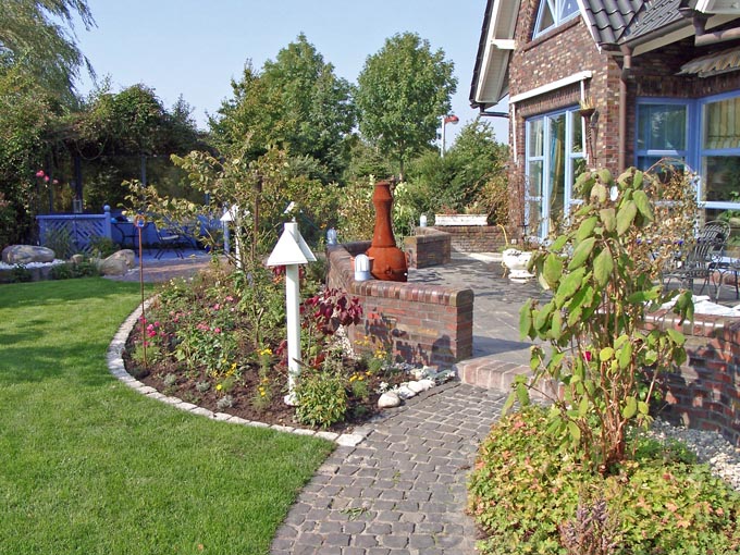 Der Garten wirkte überwiegend ein wenig "technisch".Nun rücken die Pflanzen und Blumen in den Vordergrund.